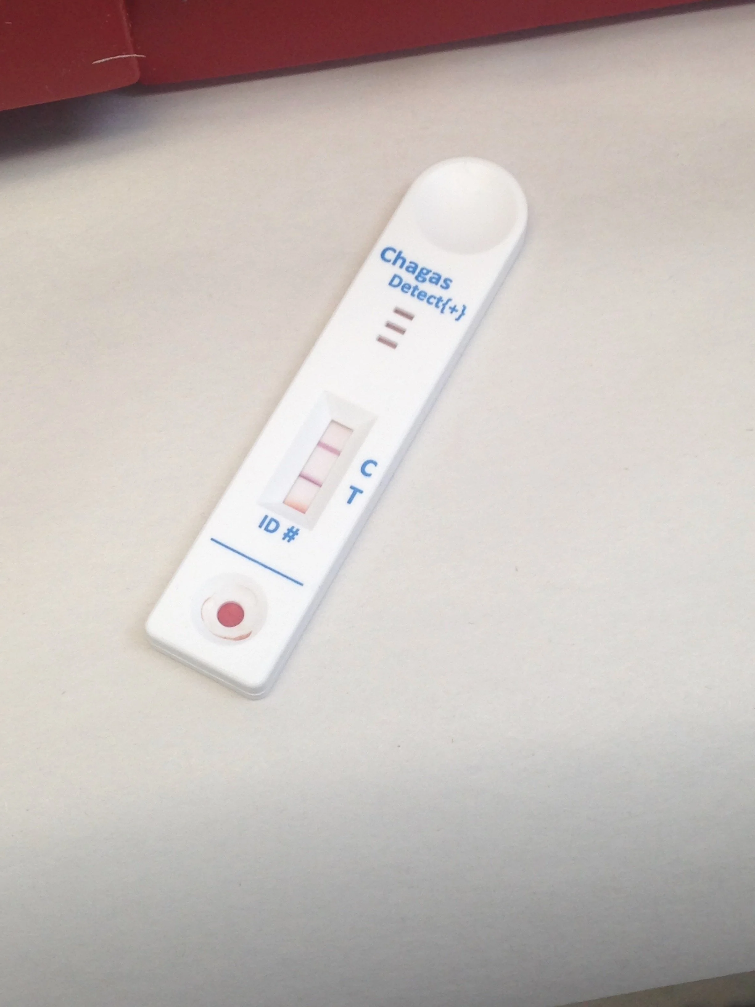 In Northern Virginia, in 2016, researchers used this rapid test in a church basement to screen the local community for Chagas disease.